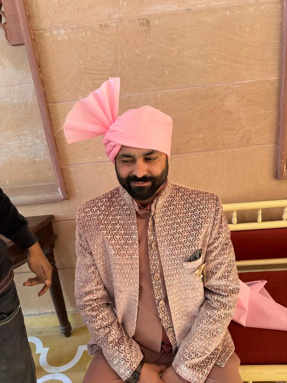 We provide elegant pink pagris for baraatis, bringing a soft yet festive touch to your wedding celebrations.